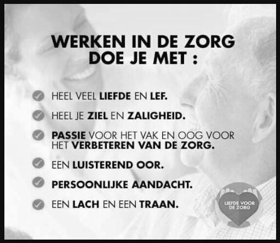 'Uw zorg Mijn zorg Warm Liefdevol Toegewijd'